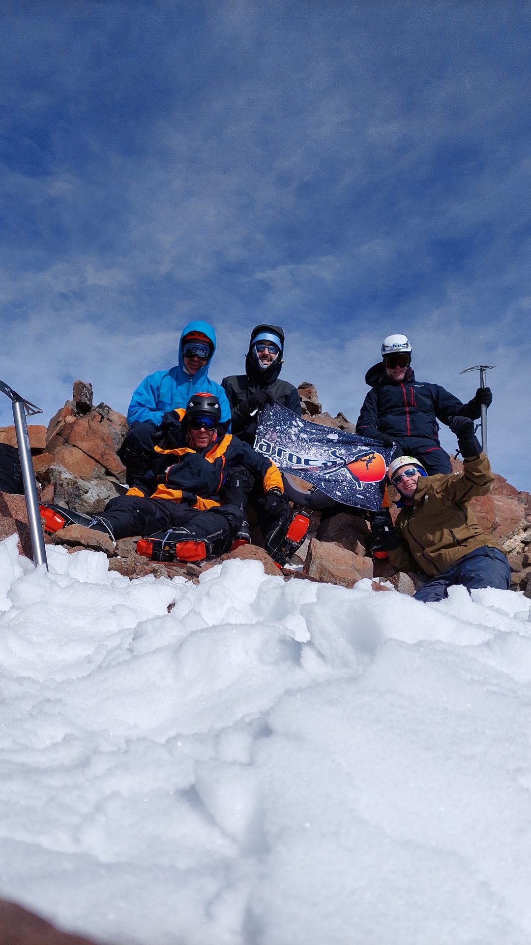 Abrazos, algunas lagrimas de emoción, muchas fotos, dejar testimonio de cumbre… y un gran regalo fue poder ver Aconcagua desde un ángulo nuevo en un día despejado.